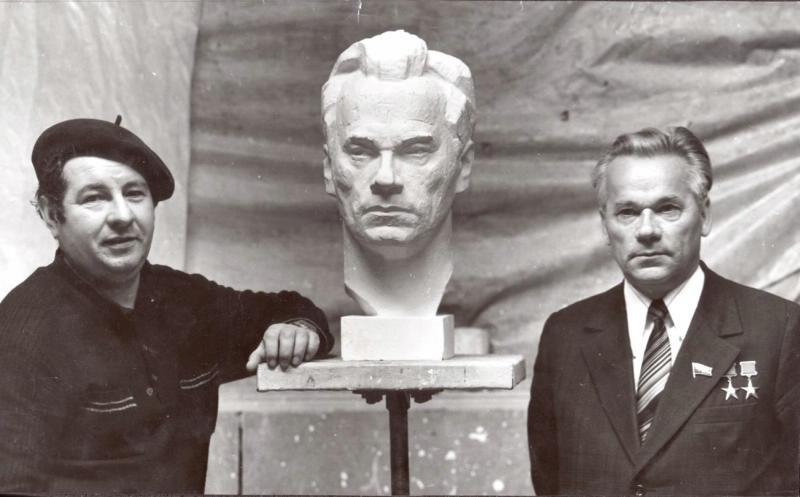 Ещё при жизни Михаилу Тимофеевичу в родном селе установили бюст. Такой чести в Советском Союзе удостаивались лишь дважды Герои Социалистического труда, коим являлся Калашников. Бронзовый бюст-это самый первый памятник конструктору-оружейнику при жизни.